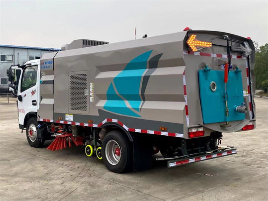 The cleaning and sweeping vehicle combines the functions of a road sweeper and a high-pressure cleaning vehicle. Generally, it comes standard with two center mounted brushes (equipped with a V-shaped high-pressure water spray rod in front of the brushes) and a center mounted suction nozzle (with a built-in high-pressure water spray rod). The washing and sweeping vehicle sprays high-pressure water from the high-pressure water spray rod during operation, which can flush stubborn attachments on the road surface. The water and garbage are sucked into the garbage bin together with the suction nozzle. Due to the high water consumption of the washing and sweeping vehicles during the operation, the water tank is relatively large. Therefore, the washing and sweeping vehicles are all modified from chassis with a wheelbase of 3800 mm or more. The washing and sweeping vehicle is equipped with a 17 meter high-pressure water flushing reel and a high-pressure water gun, making it more convenient and efficient to clean roads, sidewalks, and small advertisements.