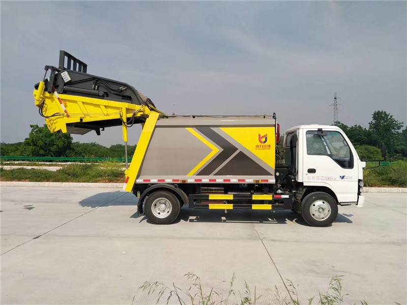 The box has a volume of 18 cubic meters and is used for loading household waste. It consists of a sealed garbage bin, a filler, a shovel, a hydraulic transmission system, and an electrical control system. The whole vehicle is a fully enclosed type, adopting electrical and hydraulic integration technology. With the help of a mechanical, electrical, and hydraulic joint automatic control system, special devices such as garbage bins, fillers, and shovels are used to achieve garbage dumping, crushing or flattening, and strong lifting and filling, squeezing garbage into the carriage and compacting and unloading it. During the compression process, all the sewage enters the sewage tank, solving the problem of secondary pollution during garbage transportation. Users can choose to install different flipping mechanisms according to different garbage collection methods: flipping standard garbage iron bucket ZBT59003-88 (300L), plastic garbage bin (240L), plastic garbage bin (660L), and can also choose to install flipping mechanisms such as triangular bucket, large floor bucket garbage bin, and swing arm garbage bin. Pneumatic sealing caps can be optionally installed.