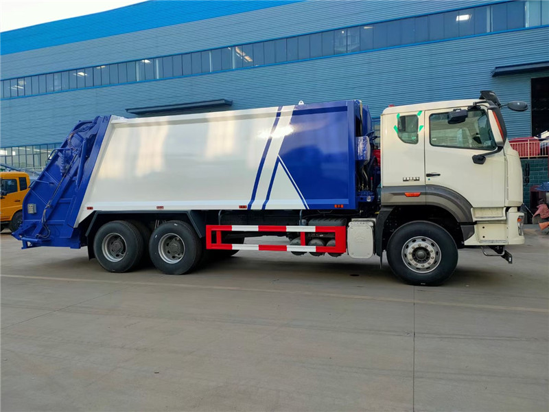 The box has a volume of 18 cubic meters and is used for loading household waste. It consists of a sealed garbage bin, a filler, a shovel, a hydraulic transmission system, and an electrical control system. The whole vehicle is a fully enclosed type, adopting electrical and hydraulic integration technology. With the help of a mechanical, electrical, and hydraulic joint automatic control system, special devices such as garbage bins, fillers, and shovels are used to achieve garbage dumping, crushing or flattening, and strong lifting and filling, squeezing garbage into the carriage and compacting and unloading it. During the compression process, all the sewage enters the sewage tank, solving the problem of secondary pollution during garbage transportation. Users can choose to install different flipping mechanisms according to different garbage collection methods: flipping standard garbage iron bucket ZBT59003-88 (300L), plastic garbage bin (240L), plastic garbage bin (660L), and can also choose to install flipping mechanisms such as triangular bucket, large floor bucket garbage bin, and swing arm garbage bin. Pneumatic sealing caps can be optionally installed.
